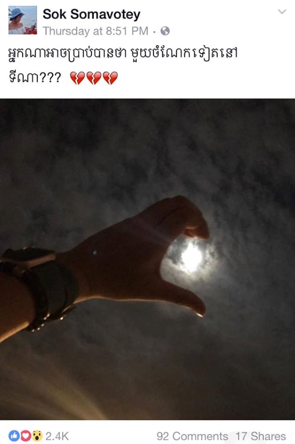 ខាងក្រោមនេះជា រូបនៅក្នុងហ្វេសប៊ុករបស់ស្រីស្អាត សុខ សោម៉ាវត្តី៖