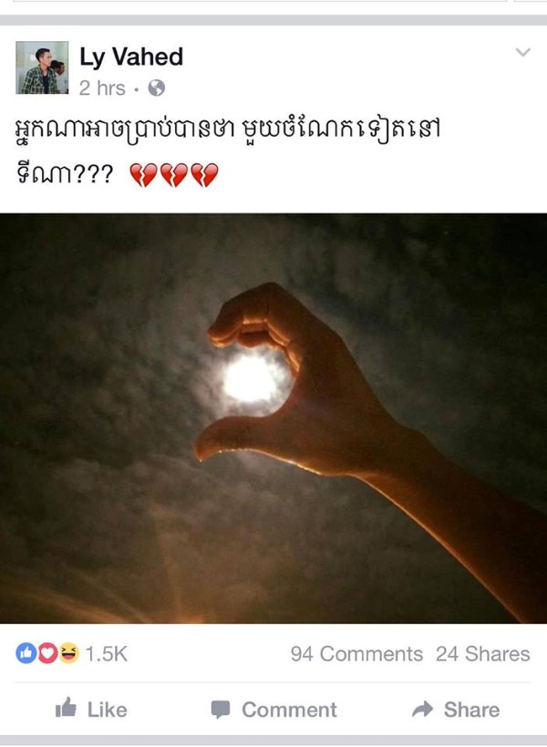បន្ទាប់មកក៏មានអ្នកគាំទ្រចូលទៅ Like និង Comment ព្រមទាំង mention ឈ្មោះអ្នកទាំងពីរច្រើនសន្ធឹកថា មួយចំហៀងទៀតនៅជាមួយគ្នាទៅវិញទៅមក ព្រមទាំងផ្គូរផ្គងឱ្យពួកគេទាំងពីរនាក់ព្រមៗគ្នា។ អីយ៉ា...អ្នកទាំងពីរបង្ហោះបេះដូងរកគ្នាហើយតើ ធ្វើឱ្យអ្នកគាំទ្រពេញចិត្តស្តូកតែម្តង។ រង់ចាំមើលលទ្ធផលទាំងអស់គ្នាណា៎...!